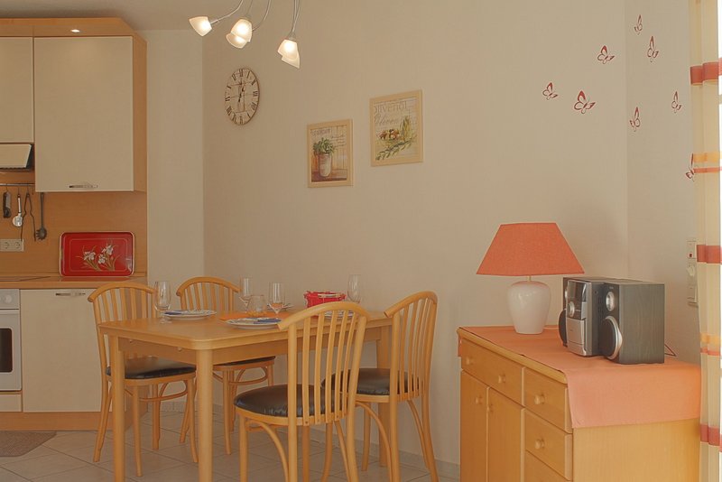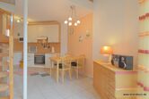 Dieses modern eingerichtete Haus verfügt im Erdgeschoss über einen Wohnbereich mit Flachbild-TV, Sitzecke, Essplatz und Einbauküche mit E-Herd mit Backofen, Kühlschrank mit Gefrierfach, Kaffeemaschine, Toaster, Mikrowelle, Waschmaschine und komplettem Geschirr. Des weiteren befindet sich ein Schlafzimmer mit Doppelbett und ein helles Duschbad mit WC im Untergeschoss. Überdachte Terrasse mit Grill und Gartenhaus mit Fahrrädern (keine Kinderfahrräder) und Bollerwagen stehen unseren Gästen zur Verfügung. Im Obergeschoss ist ein Schlafraum für Kinder mit 3 Einzelbetten vorhanden und eine Galerie als Spielbereich für die Kinder.