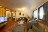 Ein gemütliches Wohnzimmer mit Holzdielenboden, Schlafsofa und TV, ein geräumiges Schlafzimmer mit Boxspringbett ( 1,80x2,00 ), TV und 2 Sesseln, eine komplett eingerichtete Einbauküche mit Geschirrspüler und Essbereich, und ein Vollbad mit Fenster stehen Ihnen zur Verfügung.
