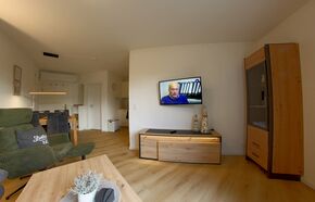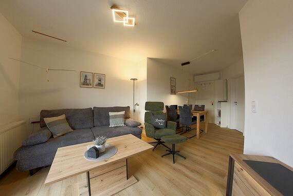 Das Wohnzimmer ist modern und bequem eingerichtet. Auch hier fehlt nichts! Flachbild TV und W-LAN können Sie kostenfrei benutzen, damit Sie im Urlaub auf nichts verzichten müssen.