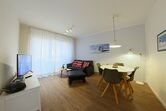 Stilvoll und vor allen Dingen mit allen Annehmlichkeiten ausgestattet ist die komplette etwa 67 qm große Wohnung, die über zwei getrennte Schlafräume, ein Tageslichtbad und einen offenen Wohn-Essbereich mit voll ausgestatteter Küche verfügt.