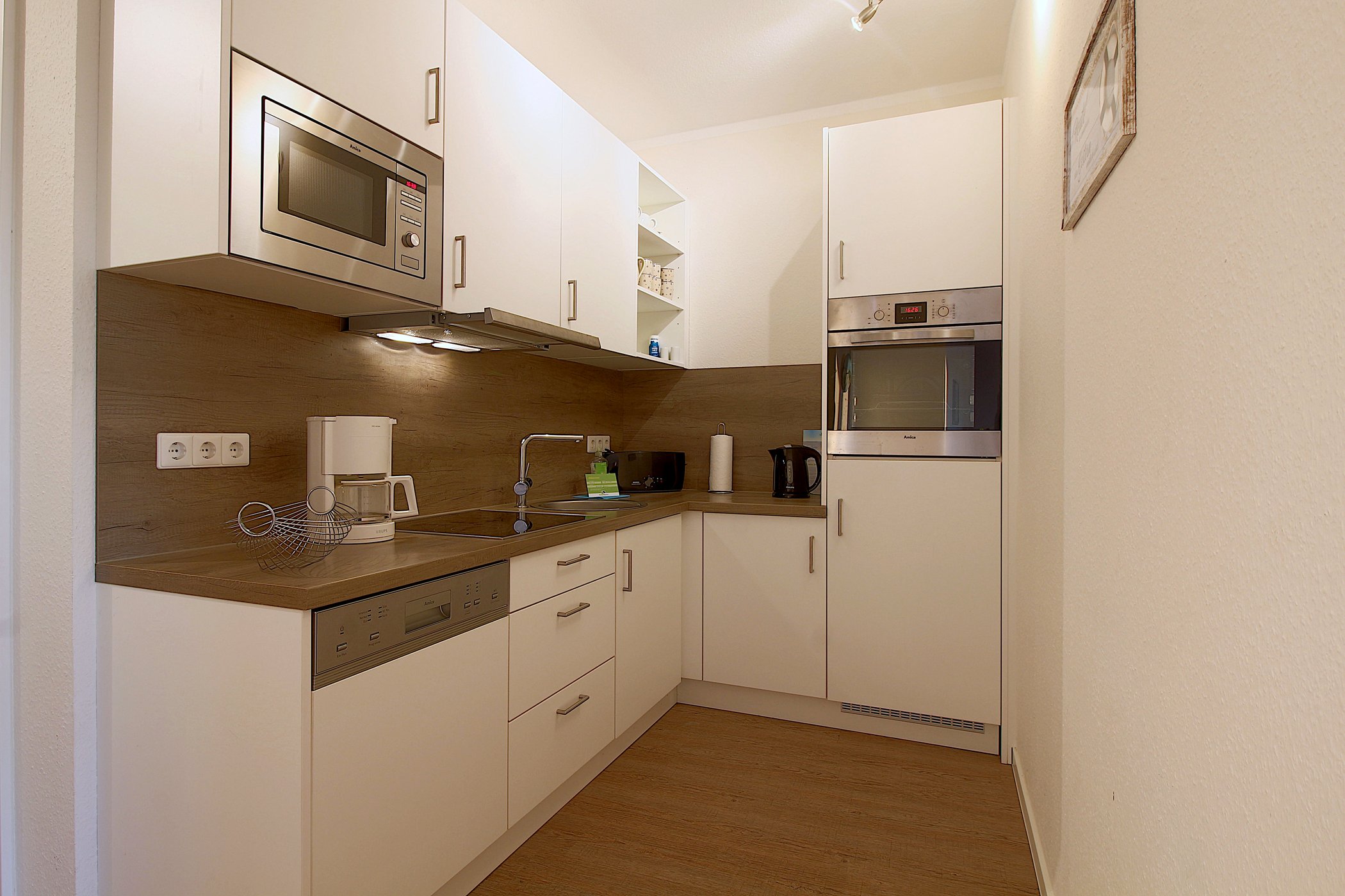 • Offene Küche mit Spülmaschine, Backofen, Herd, Mikrowelle, Kühlschrank mit Gefriermöglichkeit