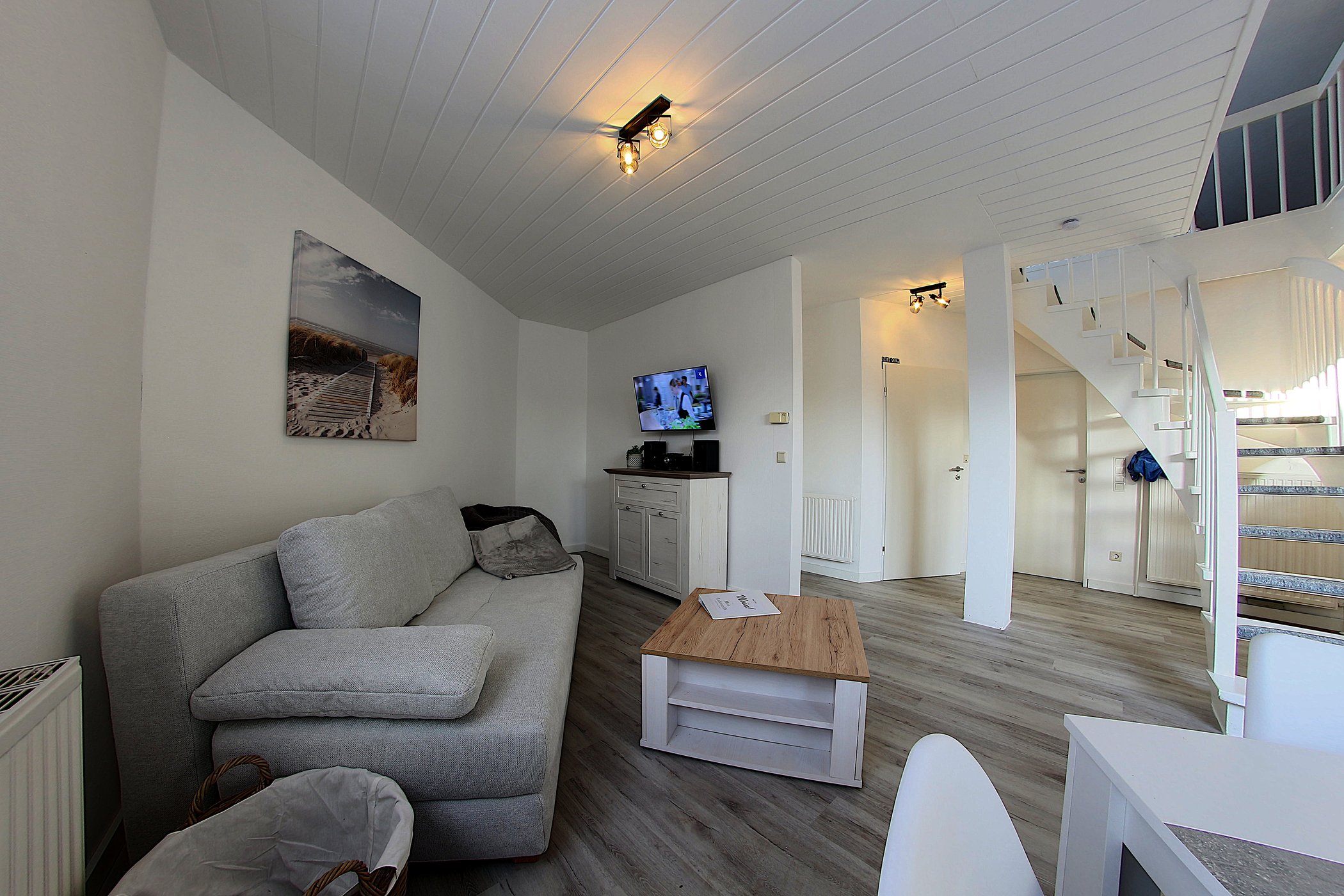 Auf dem kuscheligen Sofa können Sie auf dem Full HD Fernseher (SKY kostenlos) Ihre Lieblingsserie schauen.