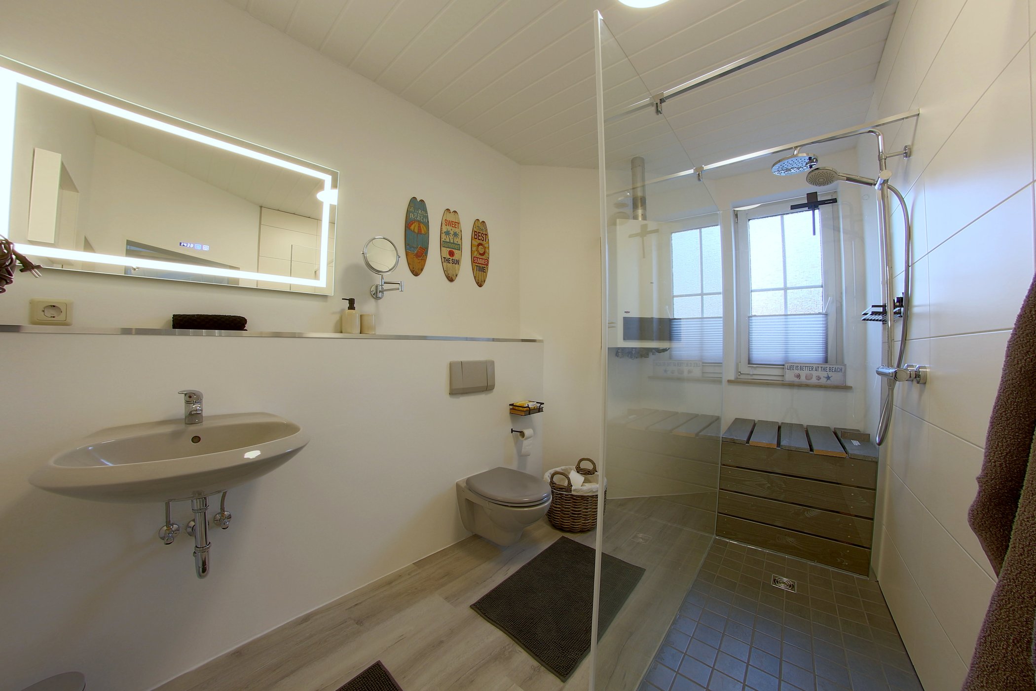 Das Duschbad mit begehbarer sehr großer Dusche und WC liegt ebenfalls im Erdgeschoß, sowie der Abstellraum mit Waschmaschine. Eine Wellness-Oase im kuscheligen Nordseebad Dorum-Neufeld.