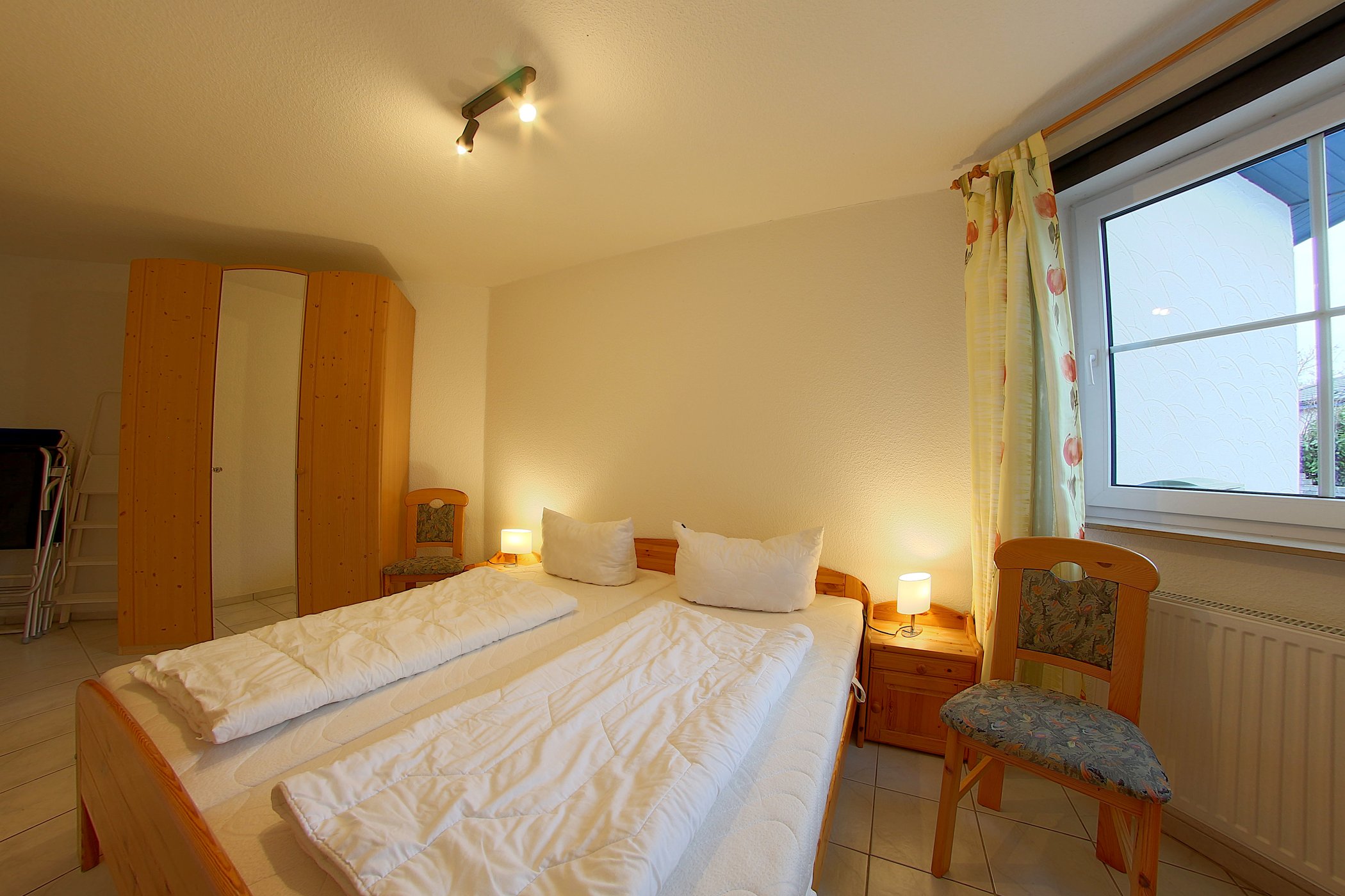 Im Obergeschoss gibt es einen weiteren Schlafraum mit 2 Einzelbetten und einem Gitterbett für Kleinkinder.